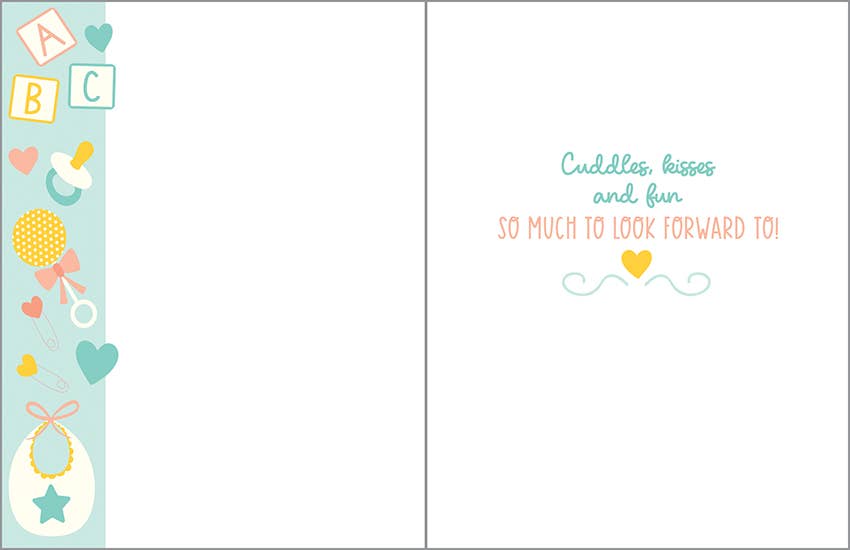 Greeting card with envelope Baby Shower Cuddles, kisses and fun So much to look forward to! Folded size: 4.25" x 5.5" (A2). Proudly made in the U.S.A.